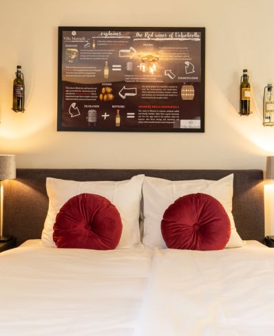 Onze kamers en villa’s hebben allemaal een unieke en bijzondere inrichting. Alle kamers en suites zijn gekoppeld aan een wijnproducent. Dit zorgt ervoor dat elke kamer zijn eigen wijnthema en karakter krijgt wat uiteraard terug te zien is in het interieur.
